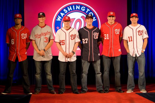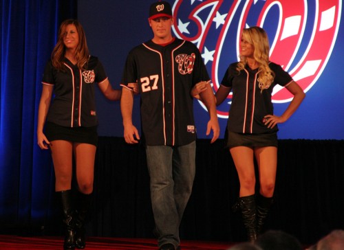 The Washington Nationals debuted their new set of uniforms for the 2011 season Wednesday night from the Stars and Stripes Club at Nationals Park with an invite only fashion show event. Six Nats were in-house as make-shift models for the evening — Ryan Zimmerman, Drew Storen, Tyler Clippard, Ian Desmond, Jordan Zimmermann, and John Lannan.