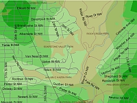 Well I just found a handy map on T-Mobile’s website that tells you exactly how good their service is, down to the street level. If you look at the map to the right, you can see where the coverage fades in Rock Creek, and where it should be five bars strong.