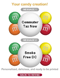 You can now make custom M&M’s and ship a four pack to your friends and family just in time for Xmas. I’m sending my bag o’ message to every DC Council member. I might even send one to Tom. I know how much he loves my political views.
