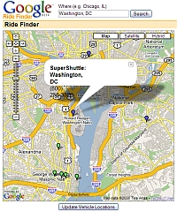 Need a ride to the airport? How about a taxi in Arlington? Well it’s Google to the rescue! They now have a new fancy-schmancy service for those who wanna see exactly where their ride is: Google Ride Finder for Washington, DC. With location data only for Super Shuttle and Alexandria Yellow Cab, it’s not that comprehensive yet.