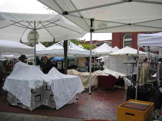 It’s hard to believe that a day that ended so beautifully started out so disgusting, but it did. This is Eastern Market yesterday at noon when we were in the middle of our Seattle impression. Luckily most of us had tents up, though dead in the middle you can see where woodturner Aaron has simply thrown tarps over all his stuff and gone off for coffee.