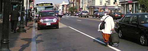 This, I doubt would be your first choice of action – walking the wrong way down M Street, in M Street, towards Wisconsin Avenue, sweat pouring down your face cursing cars with your really bad attitude.