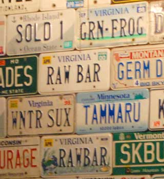 Just because I’ve gone to visit my family for the holidays doesn’t mean I’m not thinking of y’all. The wall of the Raw Bar here in Key West is festooned with old license plates and I thought that just because they weren’t on a VA car anymore wasn’t a good reason to share them with you. Hope you’re all enjoying your lows in the 30s. *chortle*