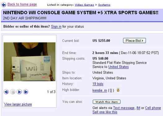 … but anyone looking at these auctions already wants a Wii for themselves or someone else. Apparently jmontalvo7881 of Fairfax didn’t want to risk anything however, and stuck in a gratuitous cleavage shot.