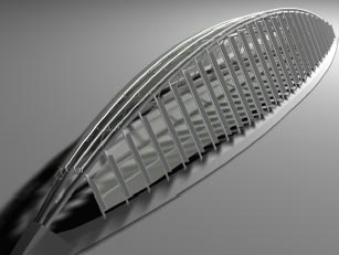 As noted earlier, a construction crew fenced off the Union Station 1st St NE driveway this week to start work on the Bike Center. DDOT has the proposed design, an organic, vaulted glass-and-steel dome with racks, lockers, changing rooms, and climate-responsive features that interact with the outside elements to keep the interior safe and comfortable.