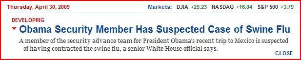 According to WaPo, a member of President Obama’s security advance team from the recent presidential trip to Mexico has a suspected case of swine flu.