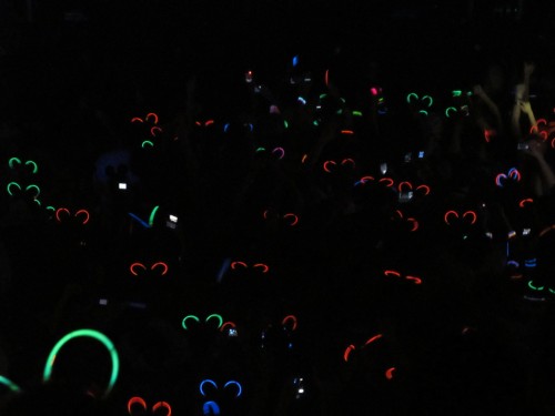 The crowd on both nights was composed of mostly enthusiastic kids who were there to dance their tails off; which they did in droves while they ate up the Deadmau5 spectacle with a spoon. I was surrounded by people literally “oooh and ahhh”-ing with each new visual or bass-heavy treat. One of the better concert gimmick products I have seen in awhile was purchased and worn in great abundance. For sale at the merchandise booth were glow-stick mouse-ears, which quickly filled up the club space as hundreds of dance fans donned them. It put a smile on my face looking down from the balcony at all of the glowing mouse-ears jumping up and down in unison on the dance-floor.