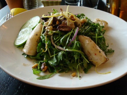 The restaurant is owned by the Blacks (of Addie’s, BlackSalt and Black’s Bar and Kitchen fame) which is pretty obvious when checking out the Black Market Bistro menu. They clearly operate on the “if it ain’t broke, don’t fix it” theory of restaurant management. You’ll find a lot of fresh vegetables, cleanly prepared fish and meat and reasonable prices. I have a hard time passing up the salads when I’m there, though the Cider-Cured Pork Tenderloin and Grilled Yellowfin Tuna tend to call to me as well. It goes without saying that if you’re eating there with me, I’ve decided what you’re ordering long before we sit down.