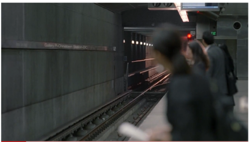 In the very first vignette in the ad, a rollercoaster pulls into a subway station and all the suits board it. The sign on the wall of the subway station reads “Gallery Place-Chinatown Station-DC.” But the station they’re all standing in is manifestly NOT a Metro station.
