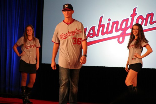 The Washington Nationals debuted their new set of uniforms for the 2011 season Wednesday night from the Stars and Stripes Club at Nationals Park with an invite only fashion show event. Six Nats were in-house as make-shift models for the evening — Ryan Zimmerman, Drew Storen, Tyler Clippard, Ian Desmond, Jordan Zimmermann, and John Lannan.