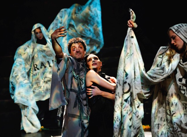 Paata Tsikurishvili, Irina Tsikurishvili, Sara Taurchini and Katherine Frattini in Synetic Theater’s “The Master and Margarita.” Photo credit: Graeme B. Shaw.