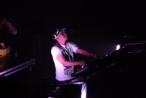 DJ Chuckie then took over and delivered a huge two hour set crafting inventive live remixes of dance-pop hits and some killer mash-ups. His set was world-class and could have been the headline performance the way the crowd reacted to it. It was obvious from watching him from the balcony that Chuckie is a natural master behind the mixer. His dizzying array of samples and truly ingenius reworkings of almost cliche dance classics like ‘Calabria’ or ‘Nightmare (Sinster Strings)’ really impressed me. Chuckie also scores major points for spelling his name out with the LL Cool J alphabet rap letters and for dropping Snap’s ‘Rhythm is a Dancer’ like a sneak attack A-bomb.