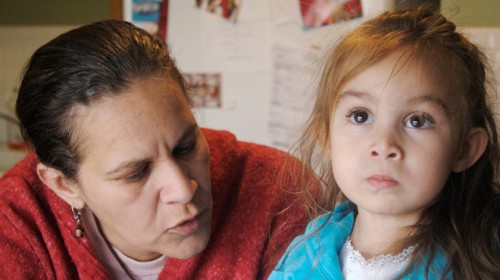 Wôpanâak linguist Jessie "Little Doe" Baird (left) with student; photo courtesy NMAI