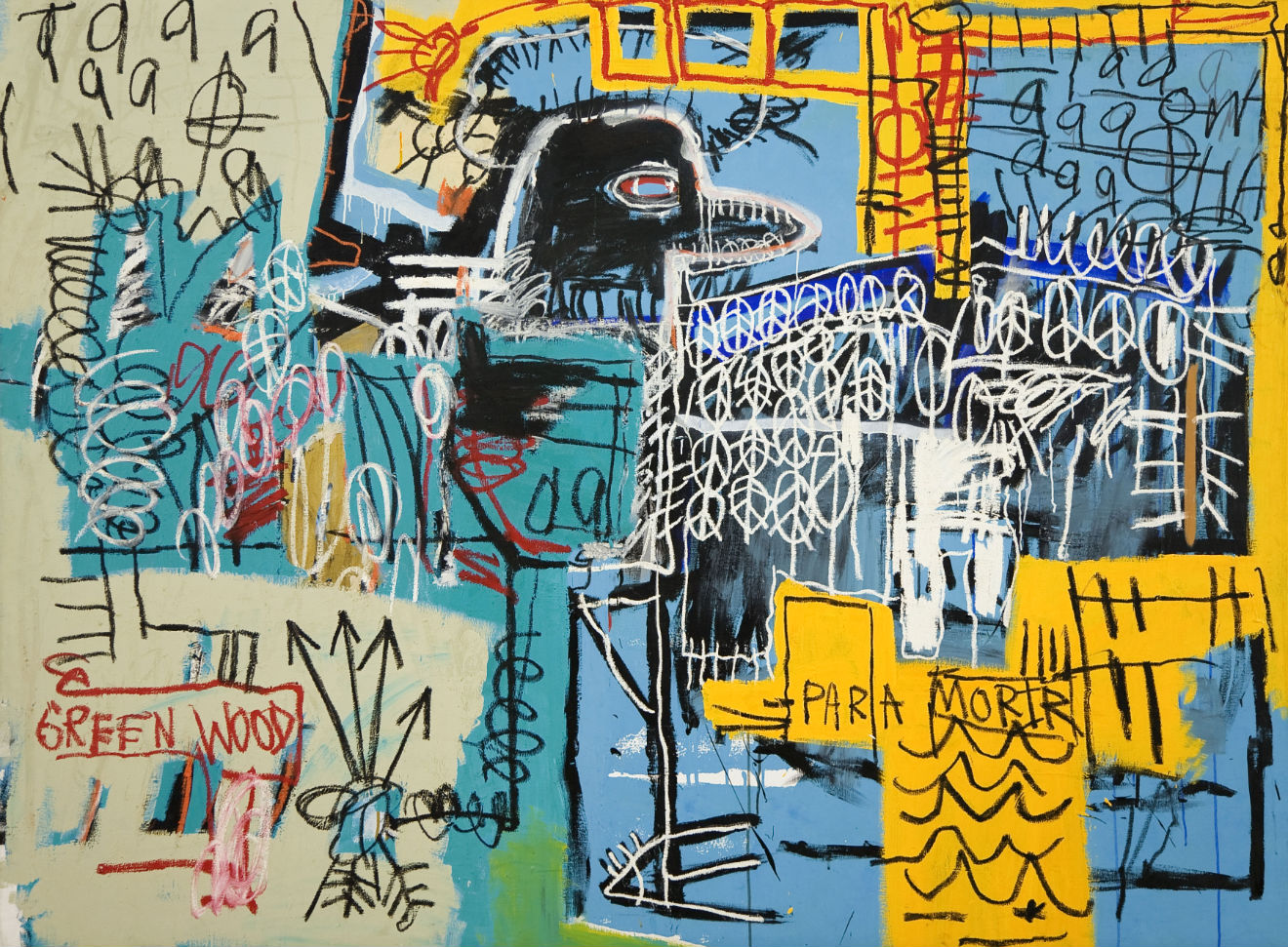 Jean-Michel Basquiat, Bird On Money, 1981. Acrylic and oil on canvas, 66 x 90 inches. Courtesy of Rubell Family Collection, Miami.