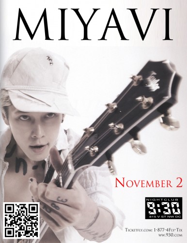 This week we are giving away a pair of tickets to see Japanese pop/rock star MIYAVI at the 9:30 Club on November 2nd. Tickets for this concert are available on Ticketfly or at the 9:30 Club box office.