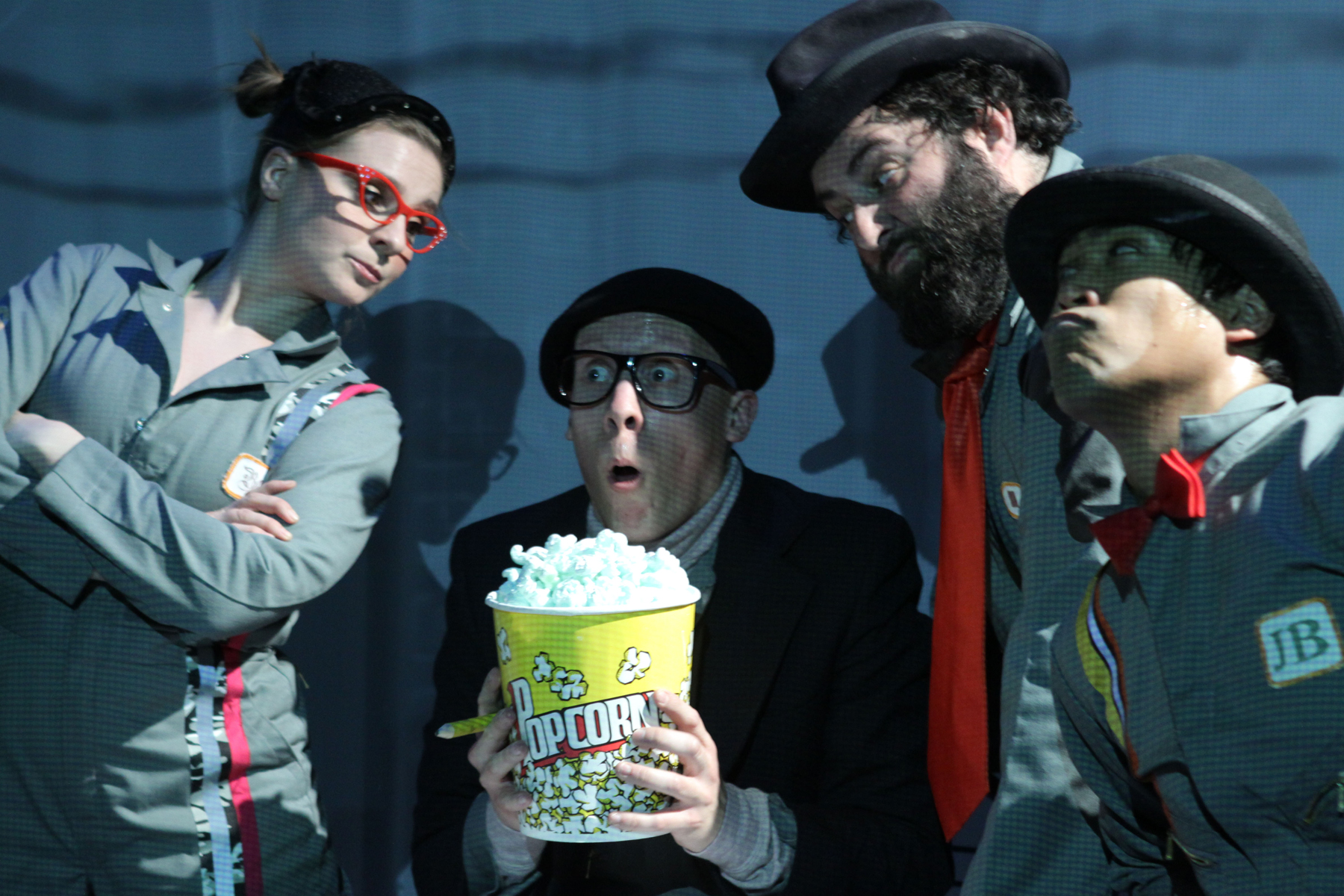 (l to r) Betsy Rosen, Clark Young, Lee Liebeskind, and JB Tadena in Astro Boy and the God of Comics. Photo: Carol Pratt