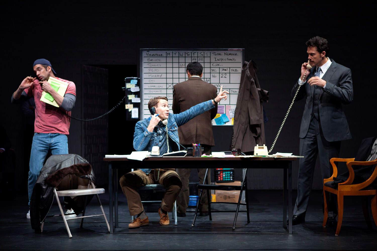 (L to R) Tom Berklund as Grady, Christopher J. Hanke as Tommy Boatwright, Michael Berresse as Mickey Marcus and Nick Mennell as Bruce Niles in The Normal Heart at Arena Stage at the Mead Center for American Theater June 8-July 29, 2012. Photo by Scott Suchman.