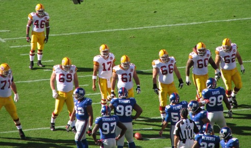 The offseason for the Redskins this year was a relatively modest one. They just bought the Defensive MVP on the open market for a handsome price, powerful mammoth Albert Haynesworth of Tennessee (ho hum). They brought back the once-overpaid Derrick Dockery, a top-shelf Longhorn left guard (offensive lines, who needs ’em). And they added perhaps the best defensive player in the NFL draft in Longhorn DE/LB Brian Orakpo, continuing their practice of making really good picks in the first round, where it’s really clear who they ought to take (you shoulda taken Mark Sanchez, he’s so pretty, he looks like that guy from Entourage!).
