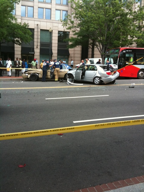 The 1300 block of K Street NW is closed due to a multi-vehicle crash. According to D.C. Fire and Emergency Medical Services the crash involves two cabs, three cars, and a DC Circulator bus. Five patients have been evaluated, one in critical condition with CPR being administered.