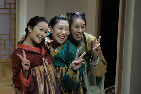 Then three women in beautiful traditional Korean costumes reveal a video of playwright Young Jean Lee, her tear-streaked face puffy from repeated hard slaps, her eyes wounded and staring at you, her audience – her tormenters and conspirators.