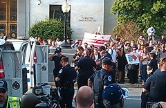 Mayor Vince Gray and several councilmembers, including Michael A. Brown and Muriel Bowser, and council candidates including Sekou Biddle, were arrested this evening by the US Capitol Police for failing to disperse in an orderly fashion after a protest outside the Senate Hart Office building spilled onto Constitution Avenue.