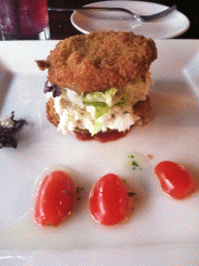 I wish the menu had more seafood or vegetarian options. We’re not big meat-eaters but we live in the neighborhood, so we’re always peering at the outside menu in vain as we try to find something that looks appealing. Maybe we will pop in for a crab stack sometime– it does look nice inside.