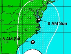 Well, as nice as good as the weather’s been the last two days, there’s a forecast that you need to be aware of for the coming weekend. Hurricane Irene, currently harassing Haiti and the Dominican Republic looks to be headed for landfall the middle of the weekend in North Carolina. NOAA suspects it may well be a major hurricane when it hits land, and that by the time it reaches the Chesapeake it would still be at hurricane strength.
