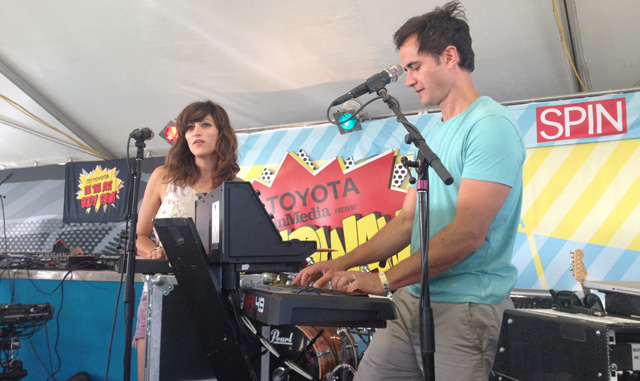 Not long after, I get a personal treat as a favorite band Dragonette play a short set on the small alternative “Soundwave” stage set up by Toyota and Spin magazine. The Toronto new wavers only play three or four songs, including the dancey “Live in the City,” but it’s an unexpected thrill to be able to get right up front for a performance before they play their main set later. These alternative locations like Soundwave allowed festival attendees rare mini-concerts for five-star performances — Dan Deacon spun a DJ set at the stage shortly before Dragonette took it over.